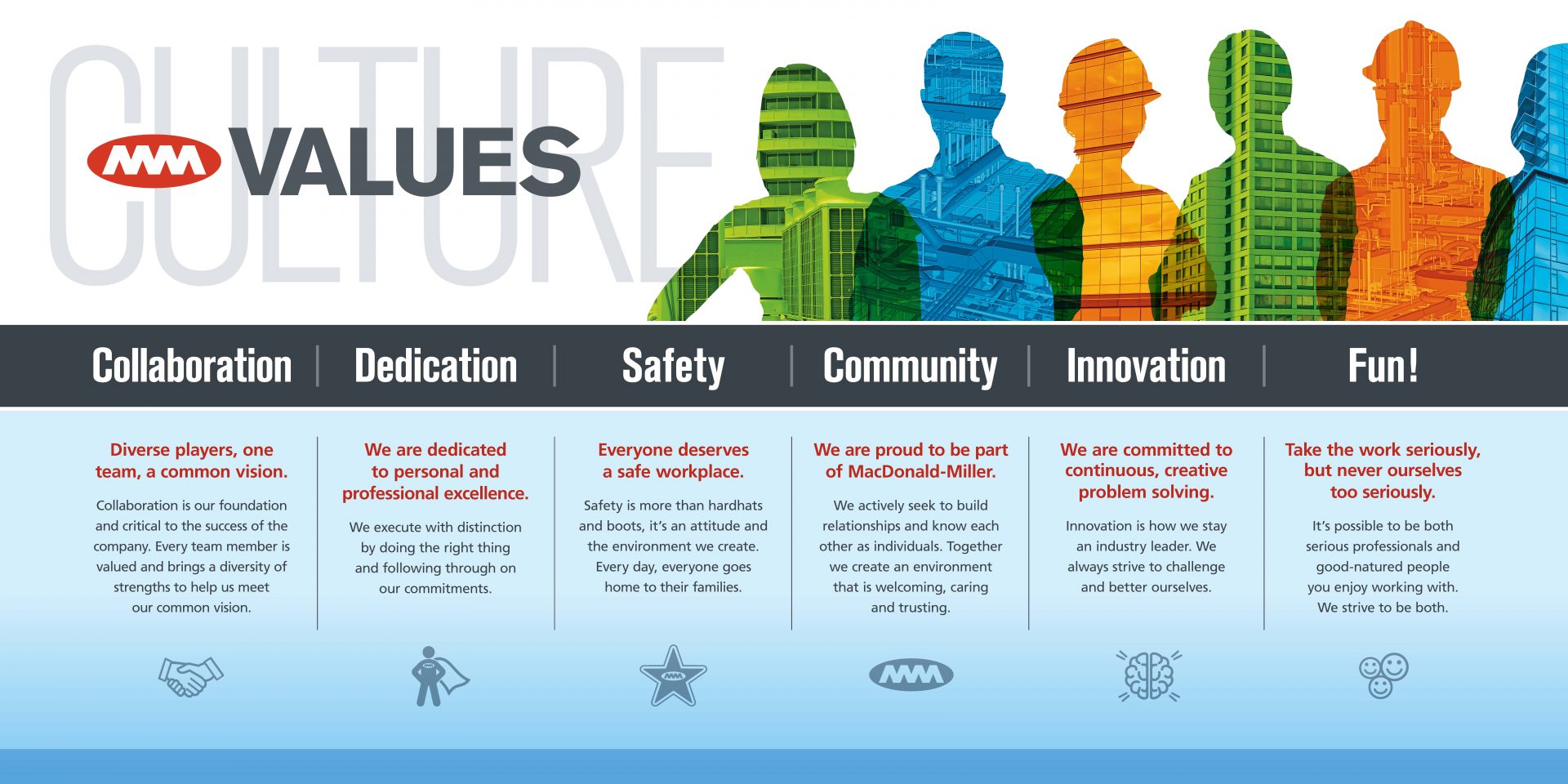 While MacDonald-Miller is renowned for superior technical expertise, there’s another facet to our company that truly sets us apart. And that’s our culture – one that’s been created from a set of essential values that embody who we are and how we work. Recently, we refined these core values.
