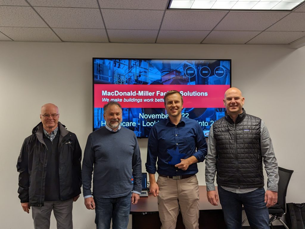 Pat Cabe, Healthcare Project Executive at MacDonald-Miller, receives the Mortenson Star Award! These annual awards are for both subcontractor companies and individual team members. The award is for the person’s contributions to the success of a project in areas such as safety, quality, and teamwork. Pat was nominated by Steve Larson for his Swedish preconstruction support efforts, especially in coordinating with AEI.