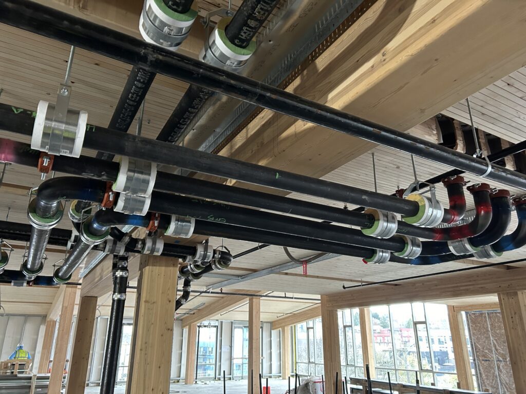 Mechanical – Installation of Trane Air Source Heat Pumps (ASHP), Heat Recovery Chillers (HRC), and a rooftop Dedicated Outdoor Air System (DOAS) unit to provide efficient ventilation and supplemental heating through electric backup boilers.