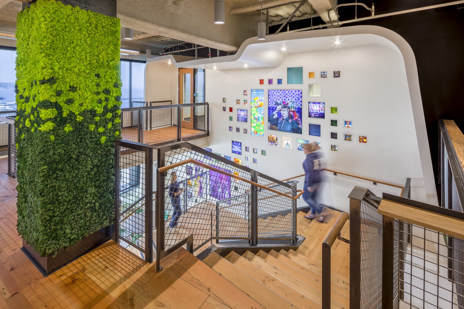This tenant improvement in the historic Maritime Building modernized a 100+ year-old structure in downtown Seattle for Big Fish Games. The five-story build-out required navigating unique structural challenges where ceiling heights varied from floor to floor and beams were not consistently stacked. The shell and core renovation also extended the building to eight floors, including two new office levels and an amenities space on the top floor.