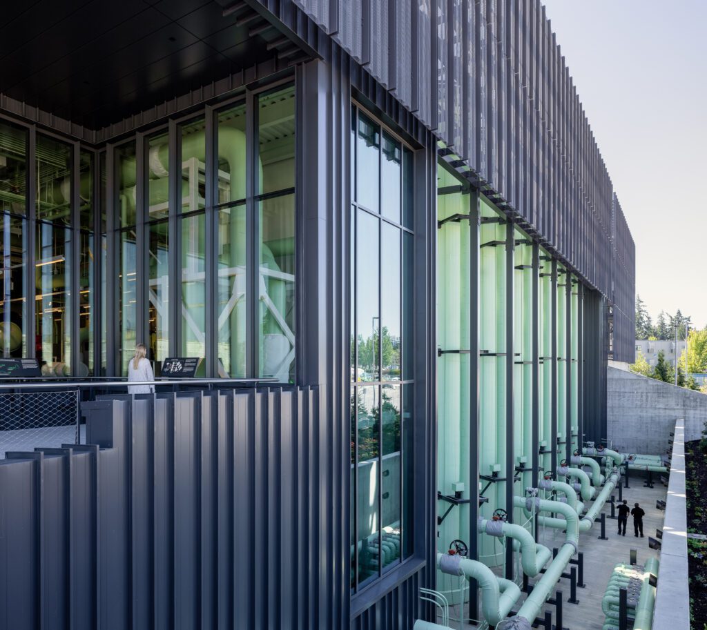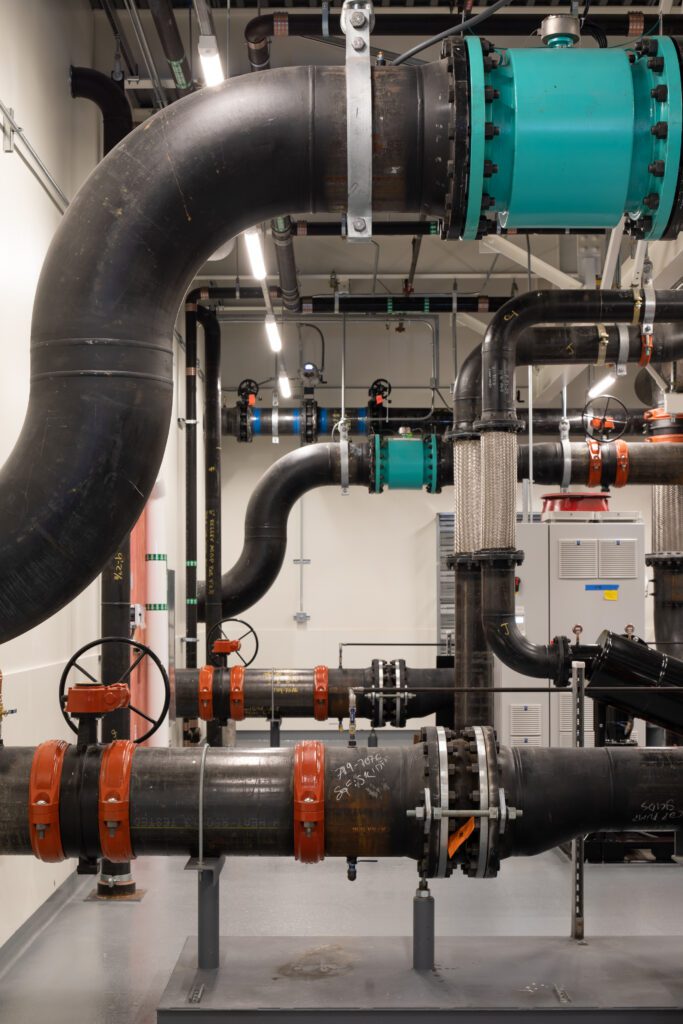 The Microsoft Thermal Energy Center (TEC) is designed for a 10,500-ton chilled water plant with heat recovery and geothermal energy exchange to support the new East Campus Modernization, which consists of 17 new buildings (approx. 3,000,000 square feet) on a 72-acre site. This project features 875 geowells drilled 550 ft underground and uses the earth’s constant temperature to heat and cool Microsoft’s campus.
