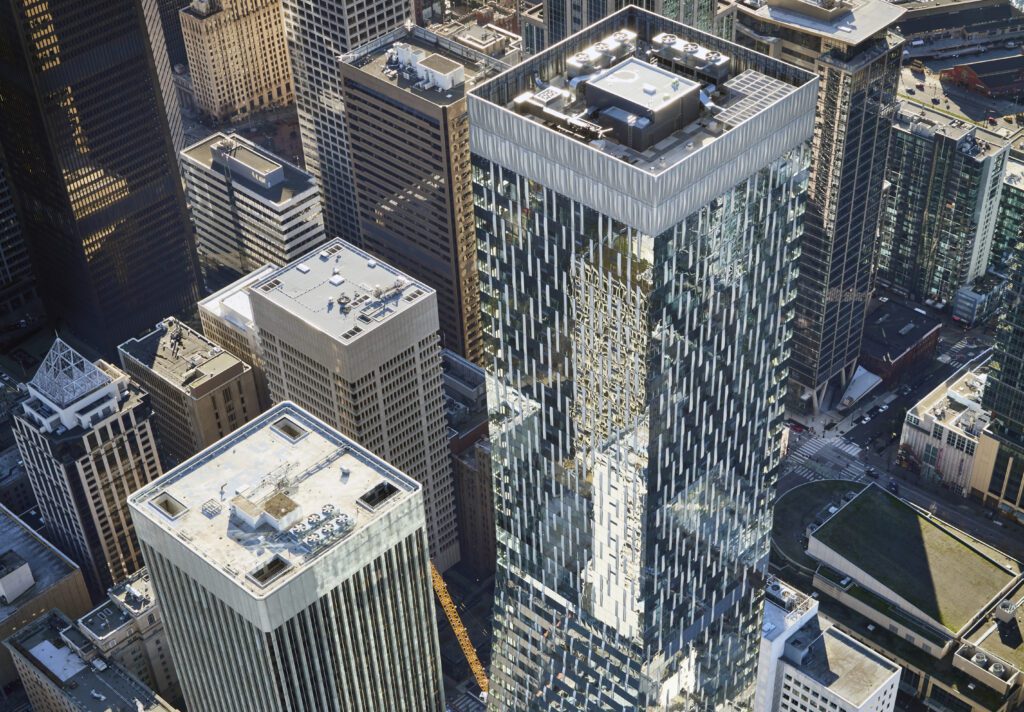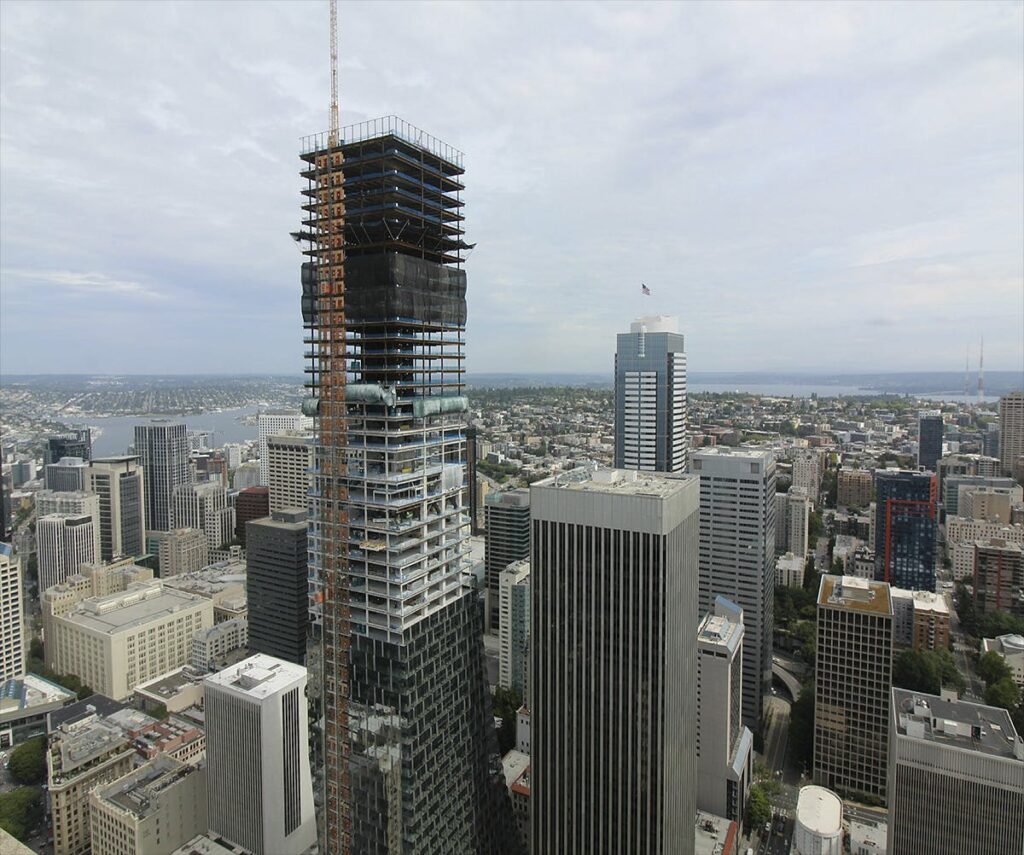 The project spanned three quarters of a city block at 5th & Union, redefining the remaining block around the existing Rainier Tower building. The completed 58-story tower now stands as the second tallest in downtown Seattle, behind only the Columbia Center’s 76 floors. Rainier Square delivers over 1.2 million SF of construction, featuring 40 stories of shell and core office space, topped by 18 floors of residential apartments.