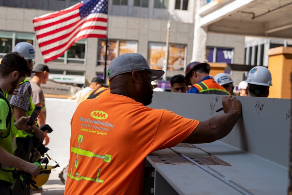The new modular composite steel core system will be the first of its kind in the world and is being called an ice cream sandwich – as the design utilizes half inch-thick steel plates as the chocolate cookies, and concrete as the filling.