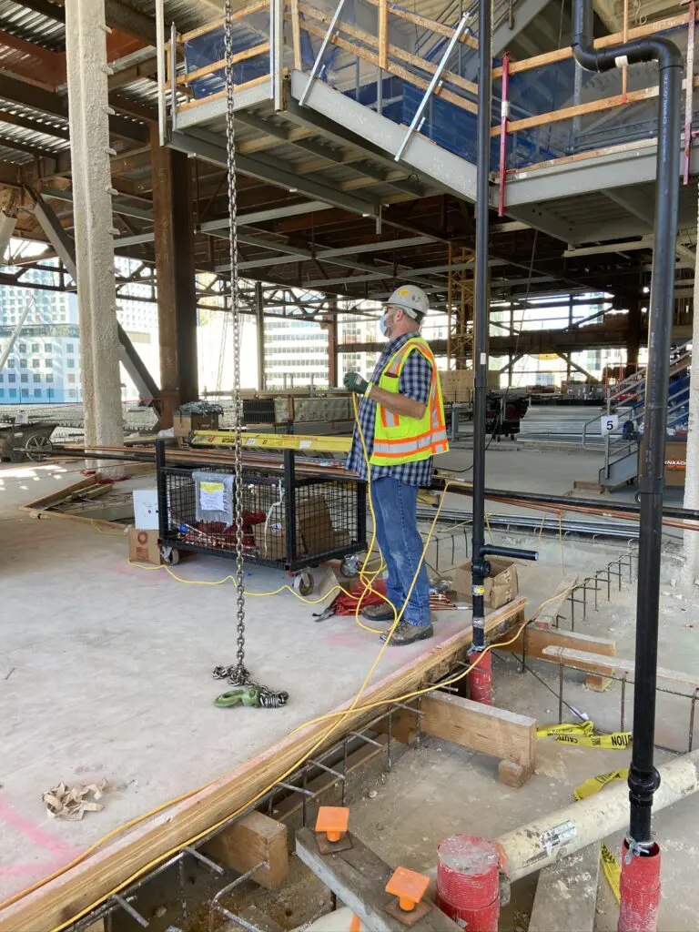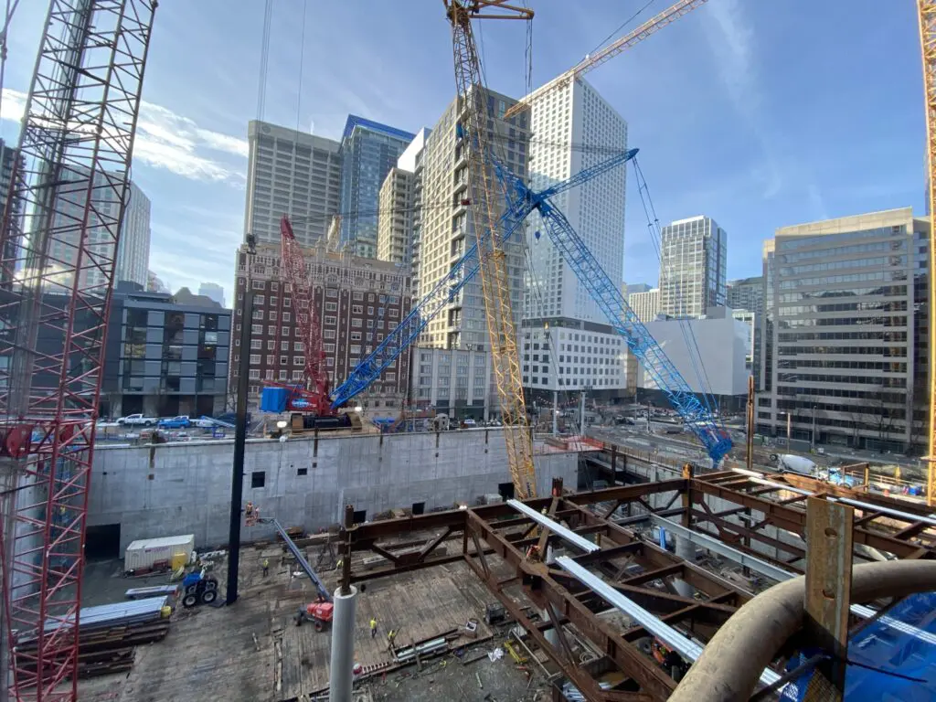 Most construction projects start on the ground and move up, so one of the biggest challenges of this site was that it was built in a billboard sequence. This unique plan organized the construction into five towers or “billboards” lined up in a row, to brace one another and support the load. Area one went up first, then area two, and so forth, until all 14 levels were completed.