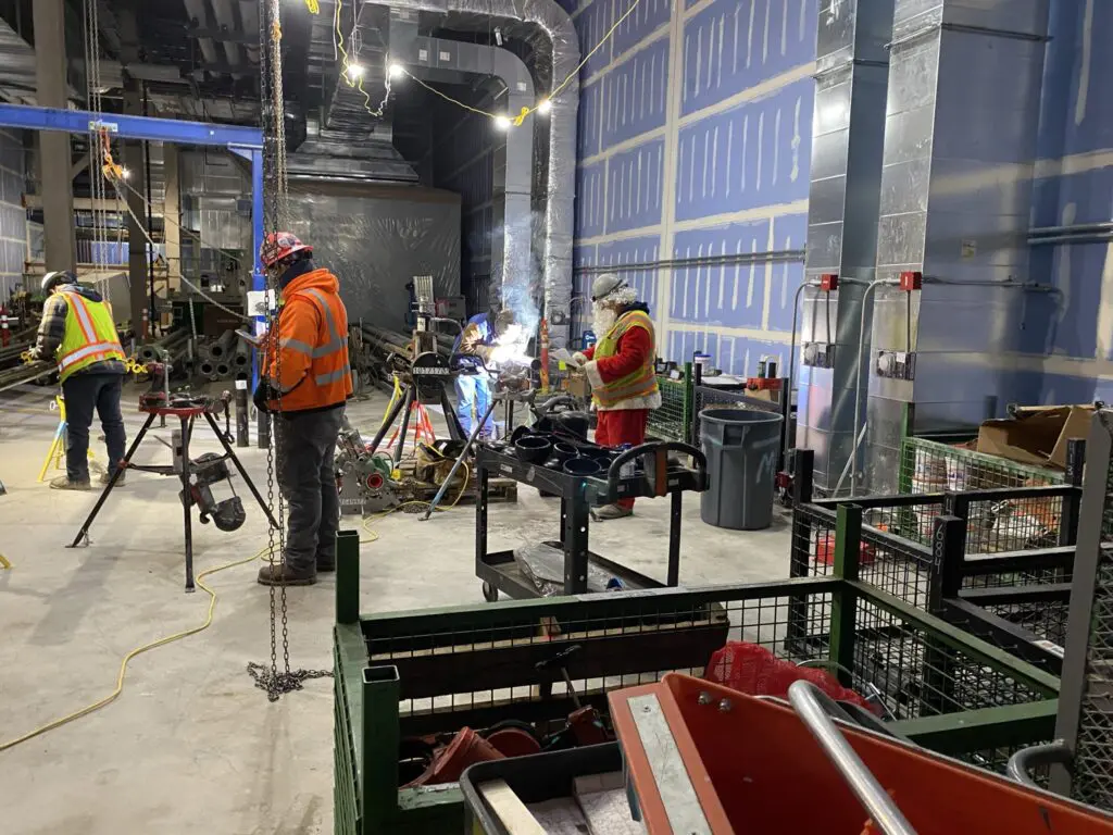 The size and scope of these systems is incredible, with many duct sections bigger than a full-size train car. The project includes more than 1.6 million pounds of ductwork, with many long runs to accommodate the exhibition halls and gathering spaces. Some of the ductwork is more than 20 feet wide. The most unique aspect of this project included prefabricating a 4,000-ton central plant, creating complex life safety systems, and using a unique construction method due to the large building footprint, which required the steel structure to be installed in phases and presented several sequencing challenges.
