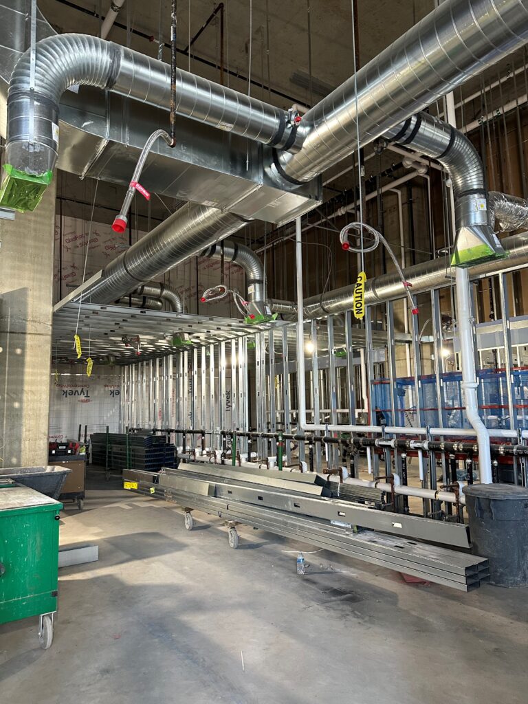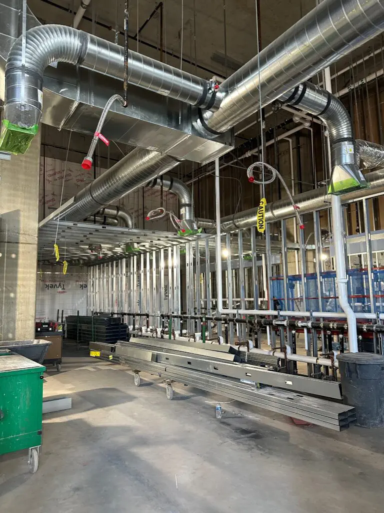At peak, our team comprised over 120 skilled tradespeople, including sheet metal, plumbing, pipe fitting, low-voltage, and insulation experts, alongside subcontractors VP Electric and Hudson Bay Insulation.